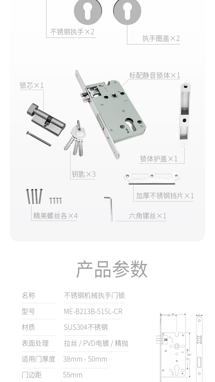> 機(jī)械門(mén)鎖 Mechanical Lever Lockset - Stainless Steel > B213系列-(便捷式按壓圈蓋結(jié)構(gòu)) > 產(chǎn)品詳細(xì)