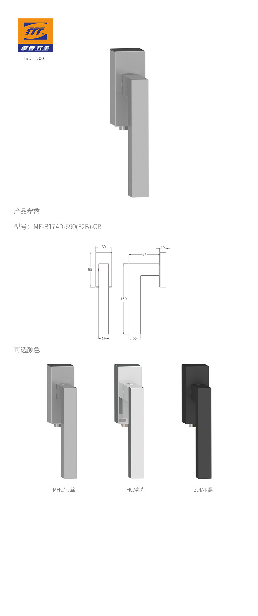 • 產(chǎn)品顏色:MHC/砂槍、MHC/拉絲、HC/亮光、2DI/啞黑
