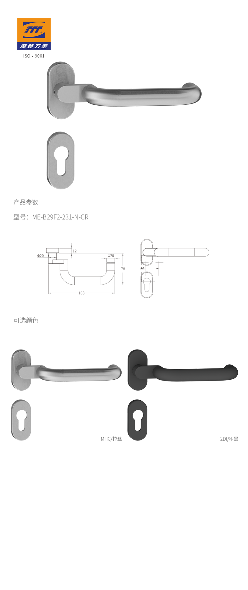 • 產(chǎn)品顏色:MHC/拉絲、2DI/啞黑