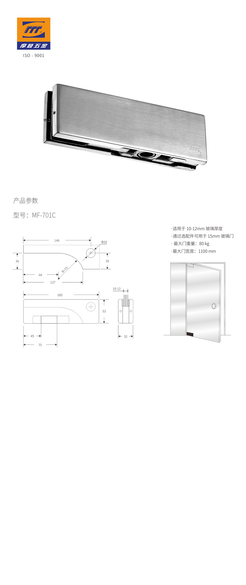 • 產(chǎn)品型號(hào):玻璃門夾-下夾|MF-701C/MF-901C-CR5