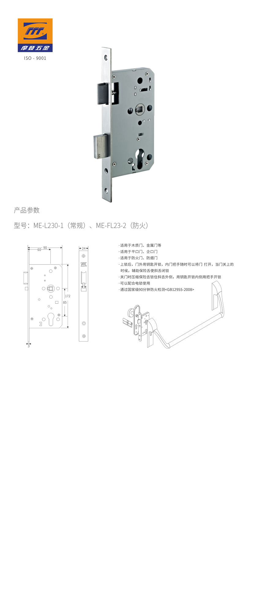 • 產(chǎn)品型號(hào):歐式通道自動(dòng)鎖止鎖體|L230-1(常規(guī))/ME-FL230-2(防火)
