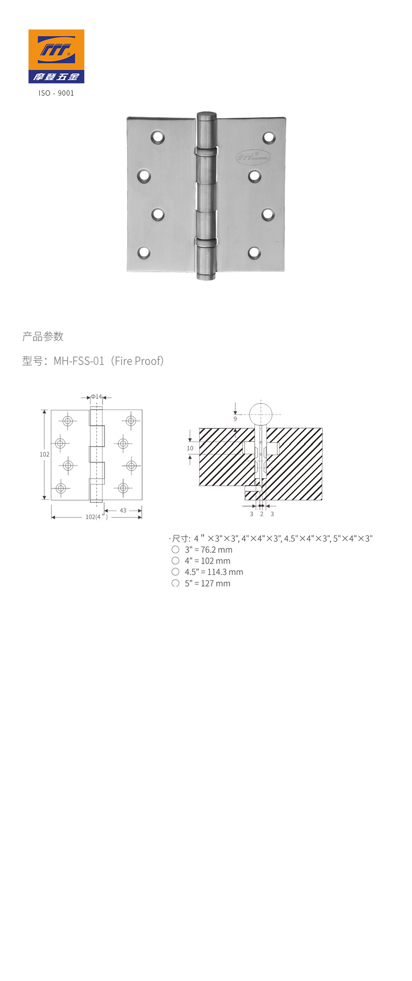 • 產品型號:不銹鋼合頁|FSS-01(FIRE PROOF)