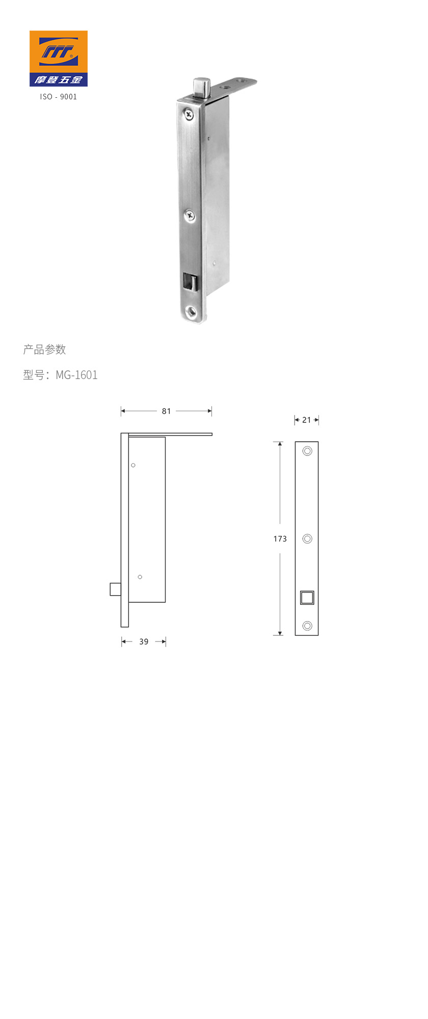 • 產(chǎn)品型號:插銷|MG-1601(自動暗插銷)