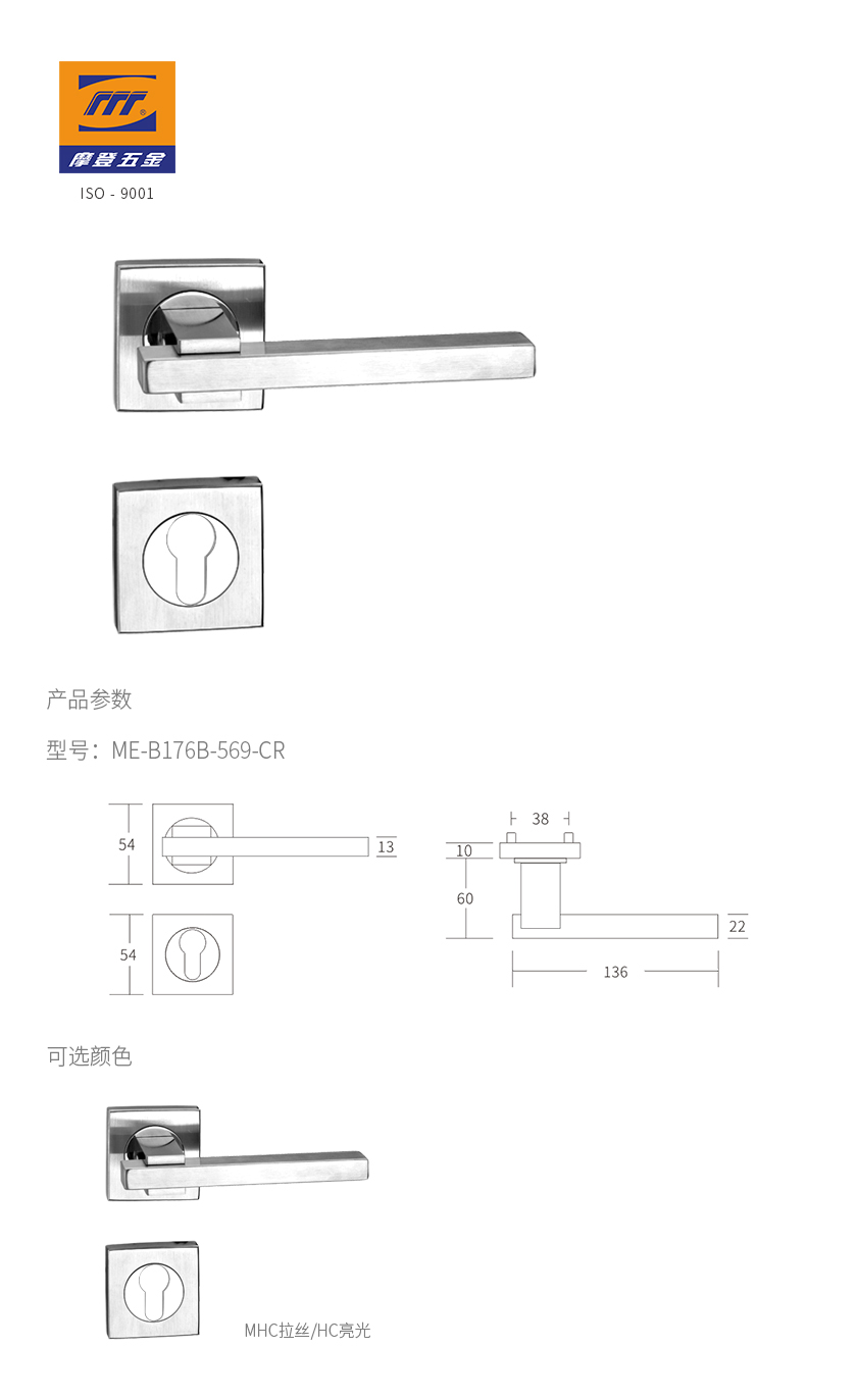 > Mechanical Lever Lockset - Stainless Steel > B176B SERIE-(Sandwich Clip-On Square Rose) > Details