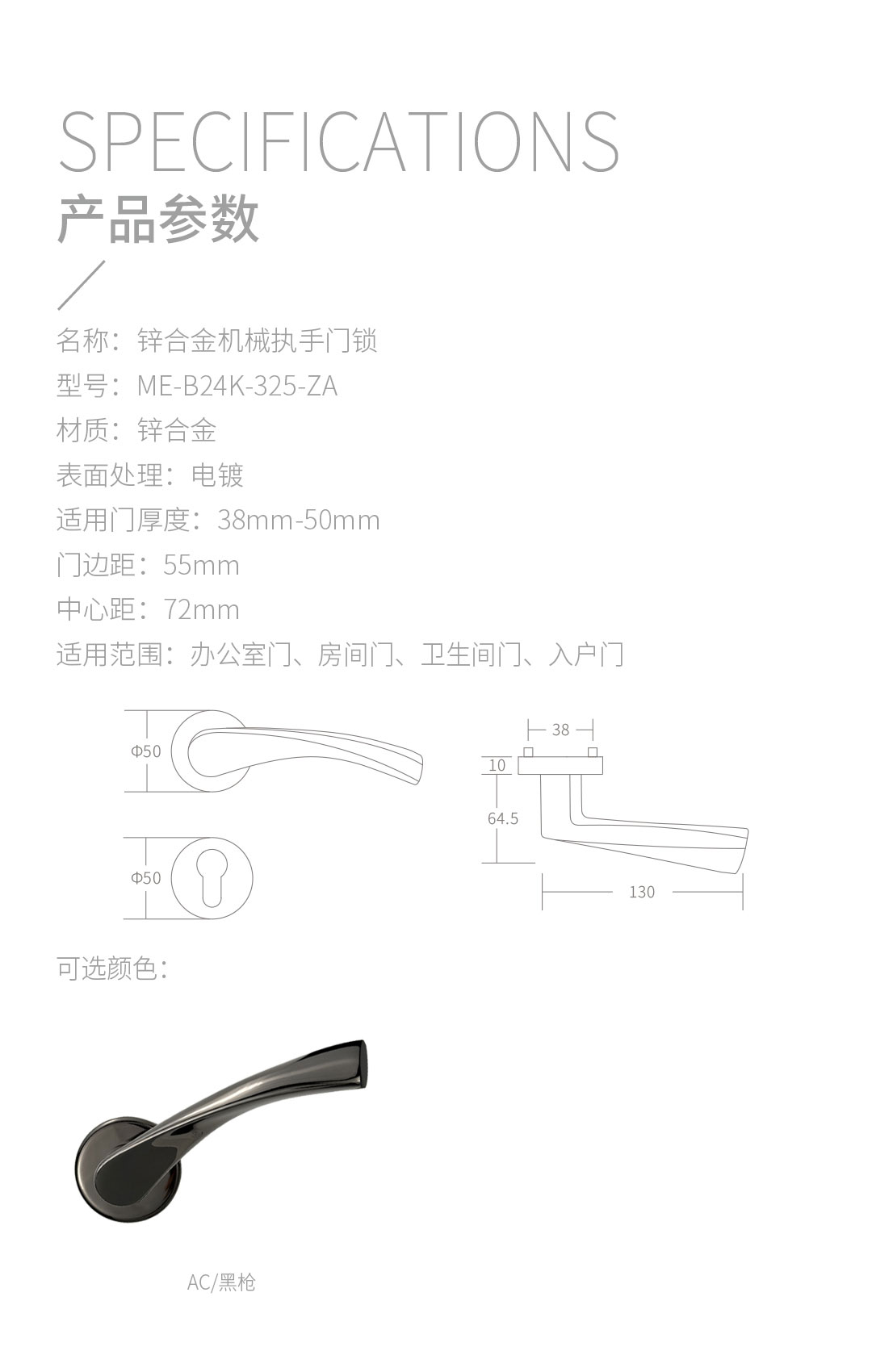 > Mechanical Lever Lockset - Stainless Steel > Zamak Leverset on Rose > Details
